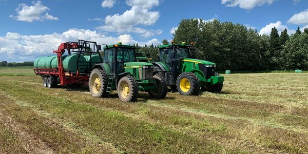 For your wrapped baling needs we offer cutting, raking, baling (John Deere C451R) as well as bale moving with a self loading/unloading Anderson bale trailer or highway hauling through out BC and Alberta. For tillage we operate a Degelman high speed disc and a Kubota power harrow. Seeding coming for the 2024 season.